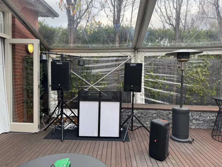 Equipment: DJ Decks • Speakers • Microphone • Lights • Smoke Machine • Table